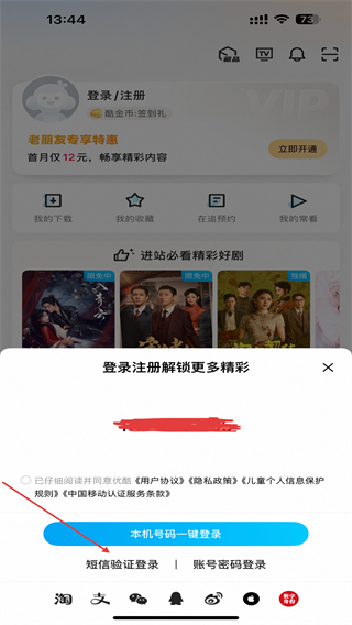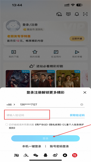 5、將收到的驗證碼輸入進去后,再點擊登錄的按鈕即可。