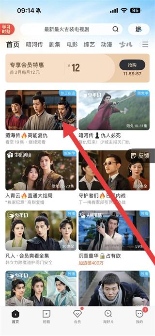 1、打開優(yōu)酷視頻應用,在首頁選擇要觀看的視頻,如藏海傳,點擊進入播放界面。