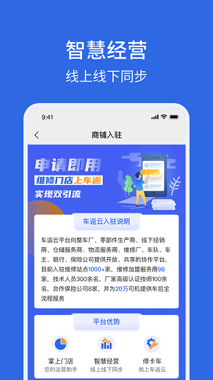車逅云商戶端APP是面向商用車維修店/汽配店一款商戶管理服務(wù)應(yīng)用,商戶可以開(kāi)通店鋪,進(jìn)行店鋪管理,后續(xù)會(huì)進(jìn)行店鋪接單/開(kāi)單管理及上游配件采購(gòu)。
