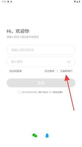 1、打開小滴云手機APP,進入時會彈出用戶協(xié)議與隱私政策,點擊同意并繼續(xù)的按鈕。
