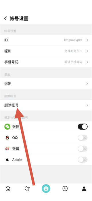 3、在賬號(hào)設(shè)置頁(yè)面里,點(diǎn)擊刪除賬號(hào)選項(xiàng)。