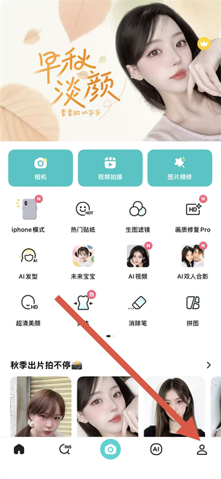 1、打開(kāi)B612相機(jī)APP,點(diǎn)擊底部導(dǎo)航欄最右側(cè)的人像圖標(biāo),進(jìn)入個(gè)人界面。
