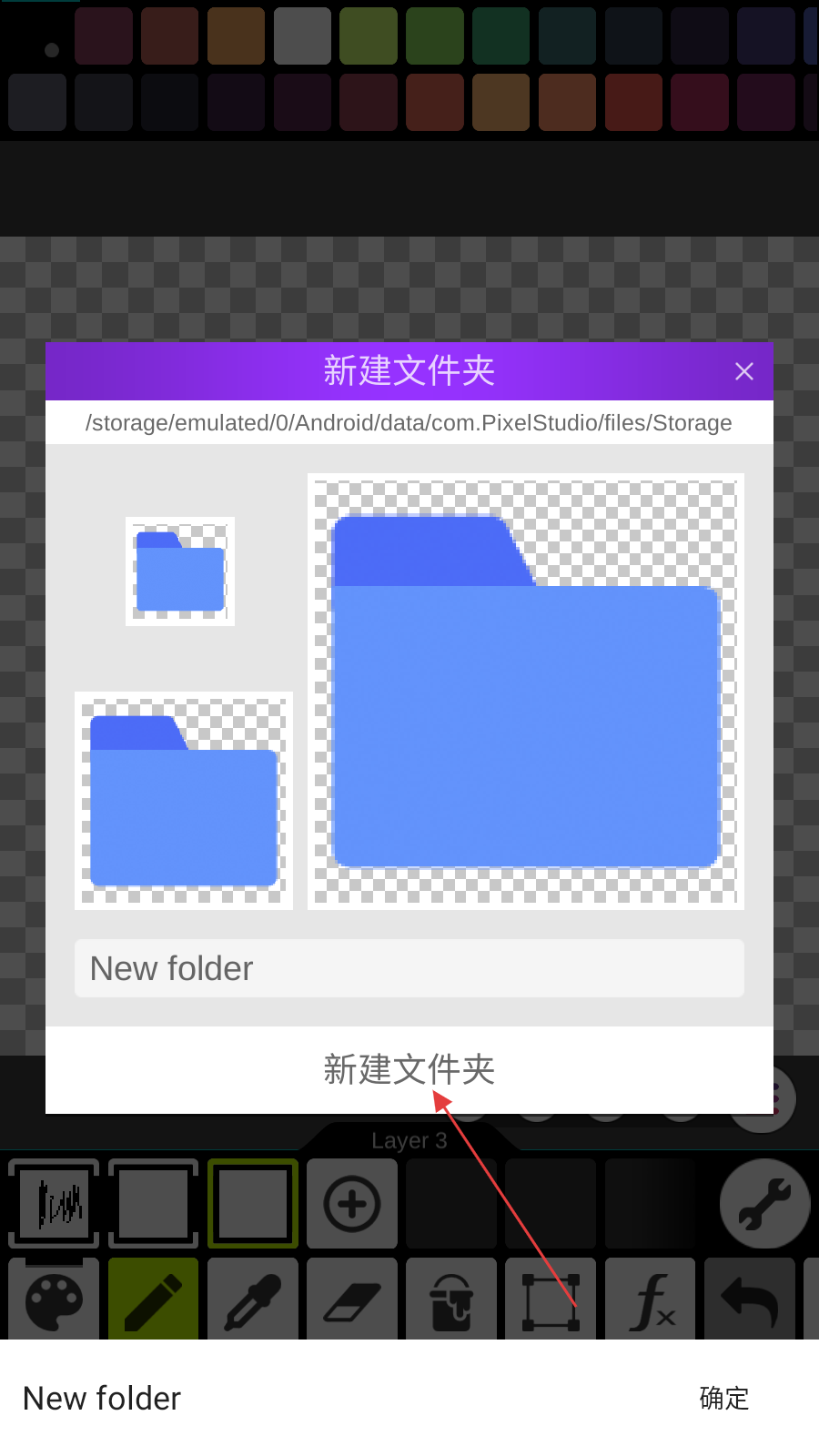 3、選好文件夾樣式并確認(rèn)名稱后,點(diǎn)擊新建文件夾按鈕,即可在貯存路徑下創(chuàng)建一個(gè)新文件夾。