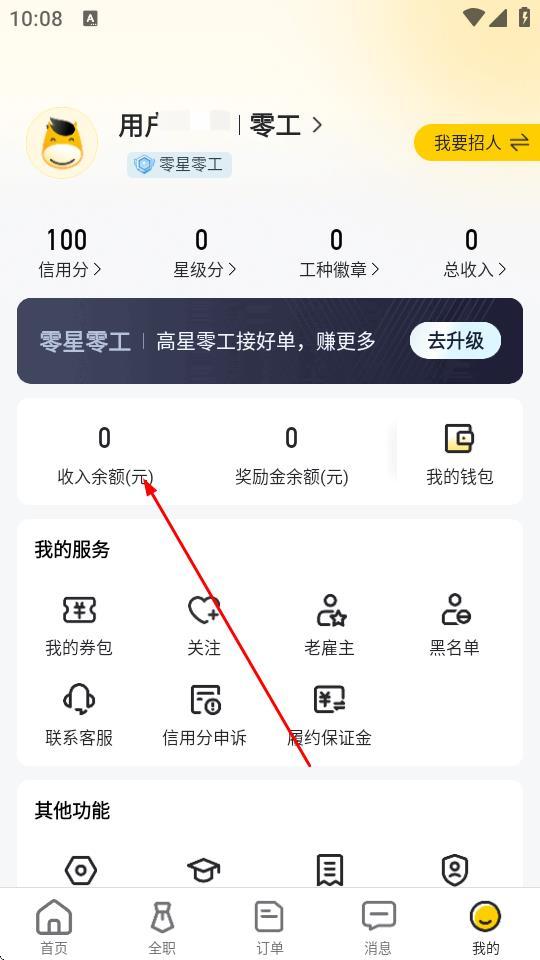 3、在我的頁面,點(diǎn)擊收入余額選項(xiàng)。