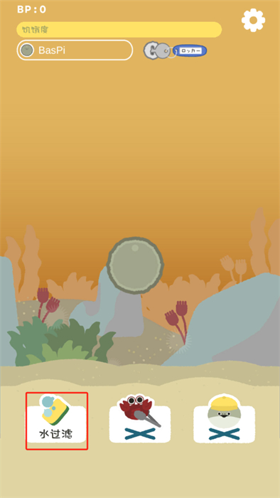 1、進(jìn)入到游戲的場景內(nèi)后,玩家一開始將一條魚也沒有,需要對水進(jìn)行過濾,可以點擊屏幕左下方的【水過濾】按鈕;