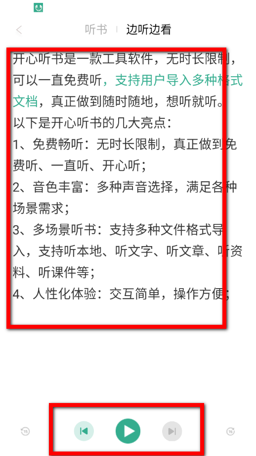 3、在邊聽邊看頁面,同時查看文檔內(nèi)容并聆聽音頻,通過下方播放按鈕控制播放。