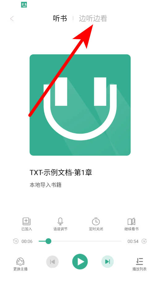 2、在聽書界面,點(diǎn)擊邊聽邊看選項,進(jìn)入對應(yīng)展示頁面。