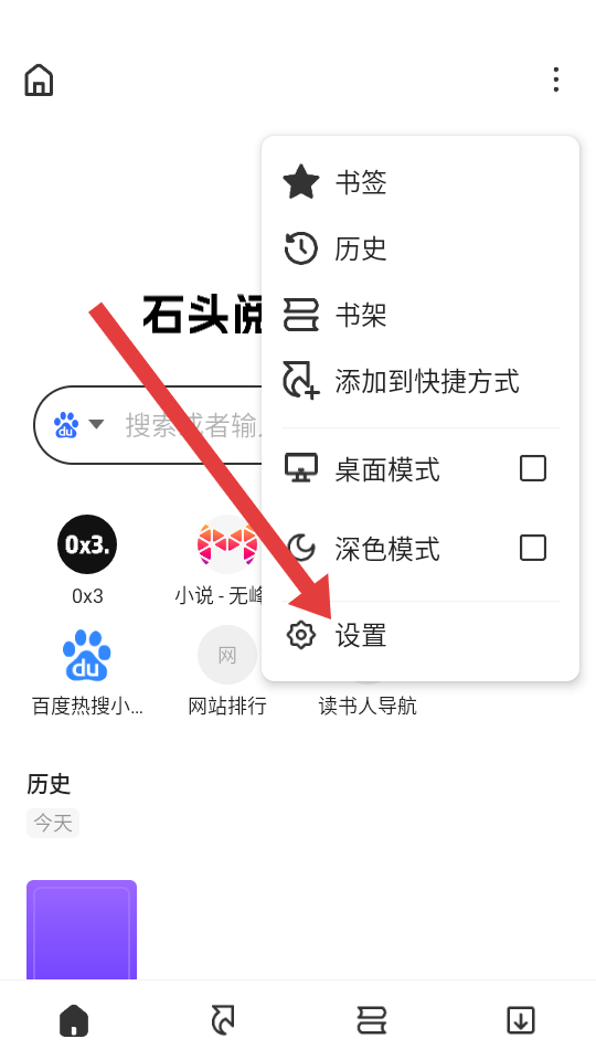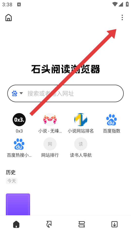 1、打開石頭閱讀瀏覽器后,我們這邊需要點擊右上角三點菜單。