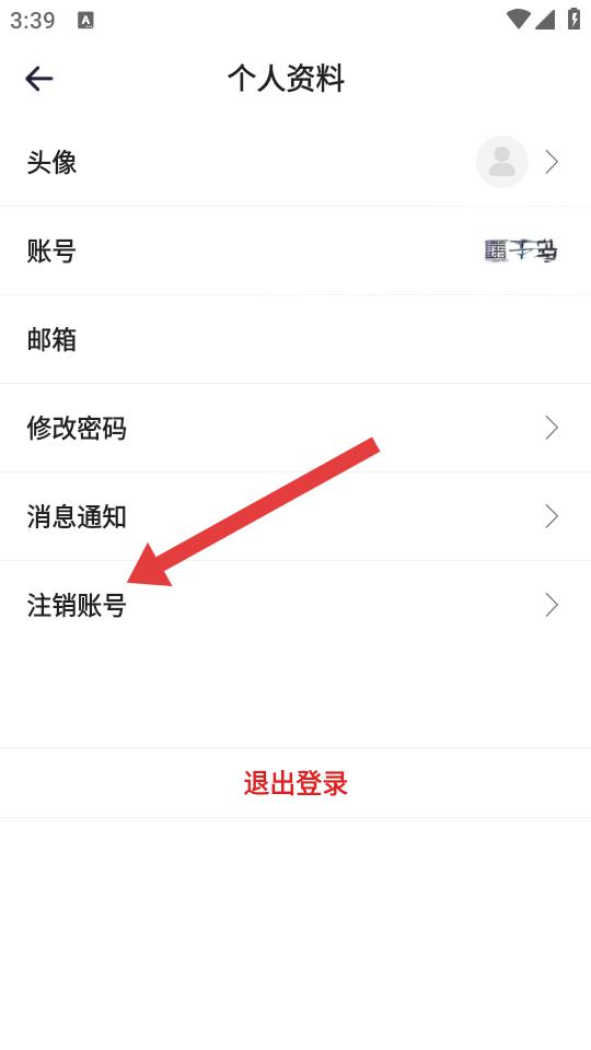 4、在個人資料頁面點擊注銷賬號,即可發(fā)起賬號注銷的流程。