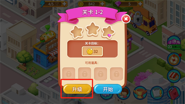 2、隨后我們可以選擇其中的一個關(guān)卡去進(jìn)行升級,可以升級對應(yīng)關(guān)卡中的菜品;