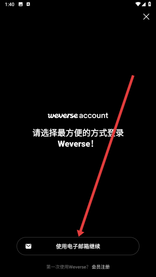 2、可以通過點擊下方使用電子郵箱繼續(xù)按鈕,使用電子郵箱進行登錄操作。