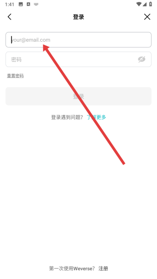 3、在進入到登錄頁面中,點擊上方輸入框輸入要登錄的電子郵箱賬號。