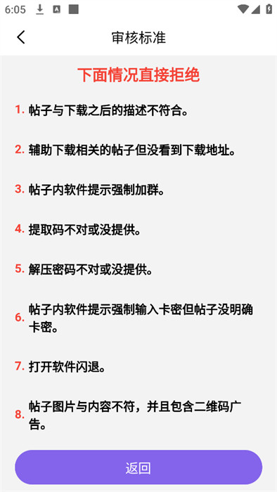 4、最后,點(diǎn)擊右上角【審核標(biāo)準(zhǔn)】,還可以看到各種發(fā)布帖子需要注意的部分。