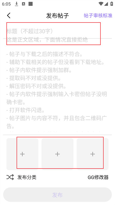 4、最后,點擊右上角【審核標準】,還可以看到各種發(fā)布帖子需要注意的部分。