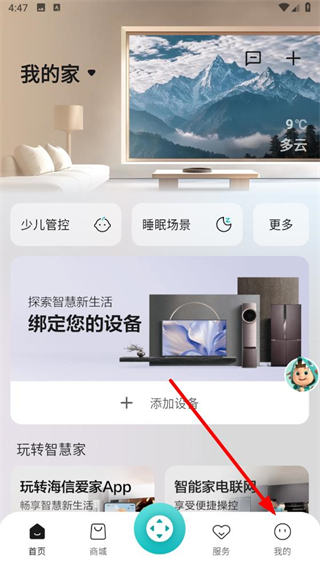 1、不再需要繁瑣的遙控器切換,只需打開海信愛家App,即可方便地控制家中各種設備;