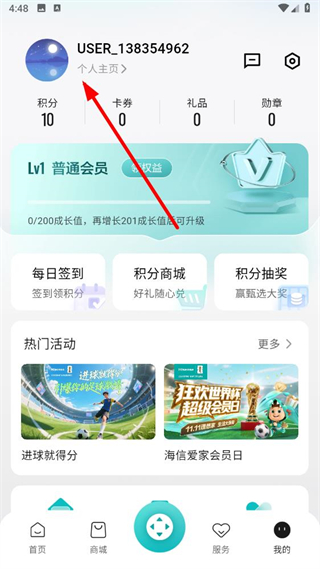 2、在我的頁面,點擊個人頭像區(qū)域進入個人主頁。