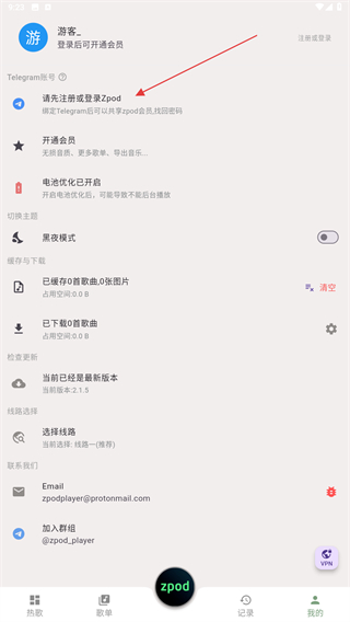 2、進入個人主頁內(nèi),點擊請先注冊或登錄zpod的區(qū)域。