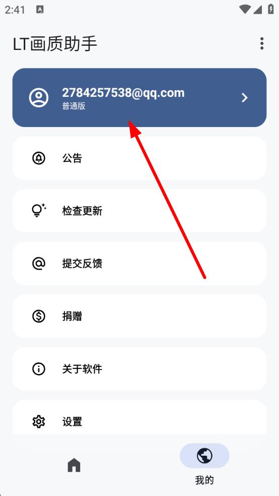 1、打開LT畫質(zhì)助手應(yīng)用,點(diǎn)擊底部導(dǎo)航欄中的我的圖標(biāo),進(jìn)入個(gè)人相關(guān)界面。