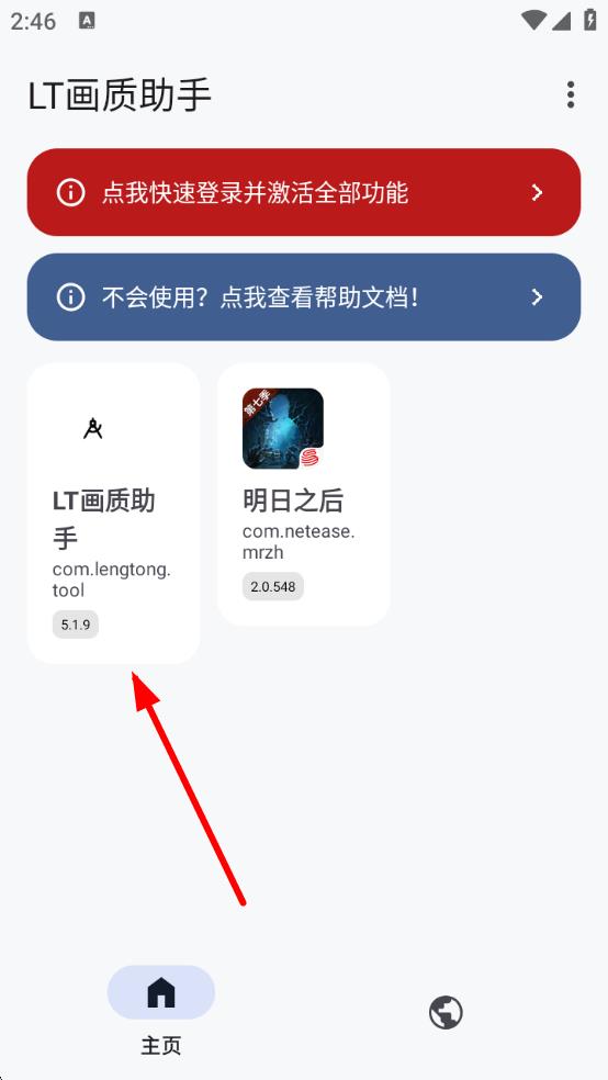 1、打開(kāi)LT畫質(zhì)助手應(yīng)用,在主頁(yè)點(diǎn)擊LT畫質(zhì)助手字樣所在區(qū)域,觸發(fā)相關(guān)操作選項(xiàng)。