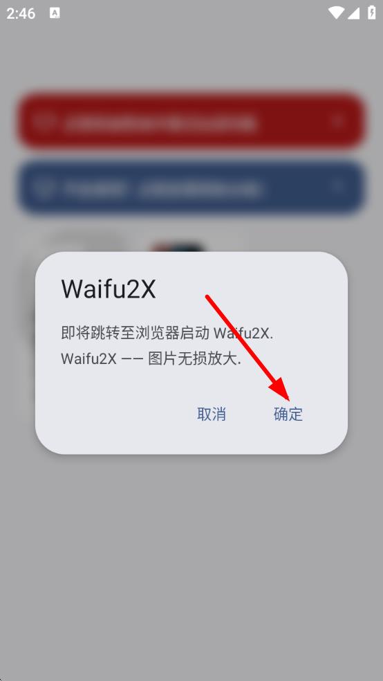 2、若彈出Waifu2X提示窗口,點(diǎn)擊確定,準(zhǔn)備跳轉(zhuǎn)至瀏覽器啟動(dòng)相關(guān)功能。
