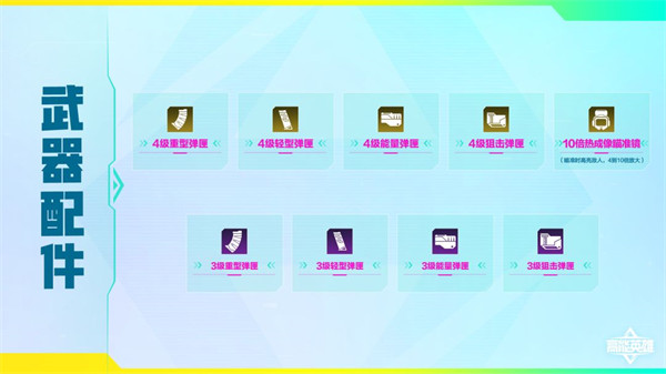 武器配件:其中「4級(jí)彈匣」收槍后可自動(dòng)裝填。