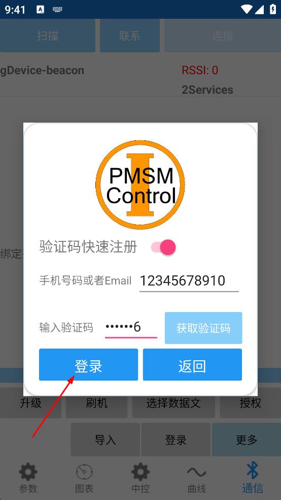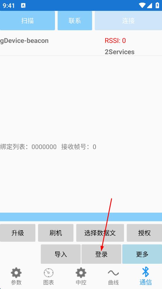 2、在“通信”頁(yè)面中,找到“登錄”按鈕并點(diǎn)擊。