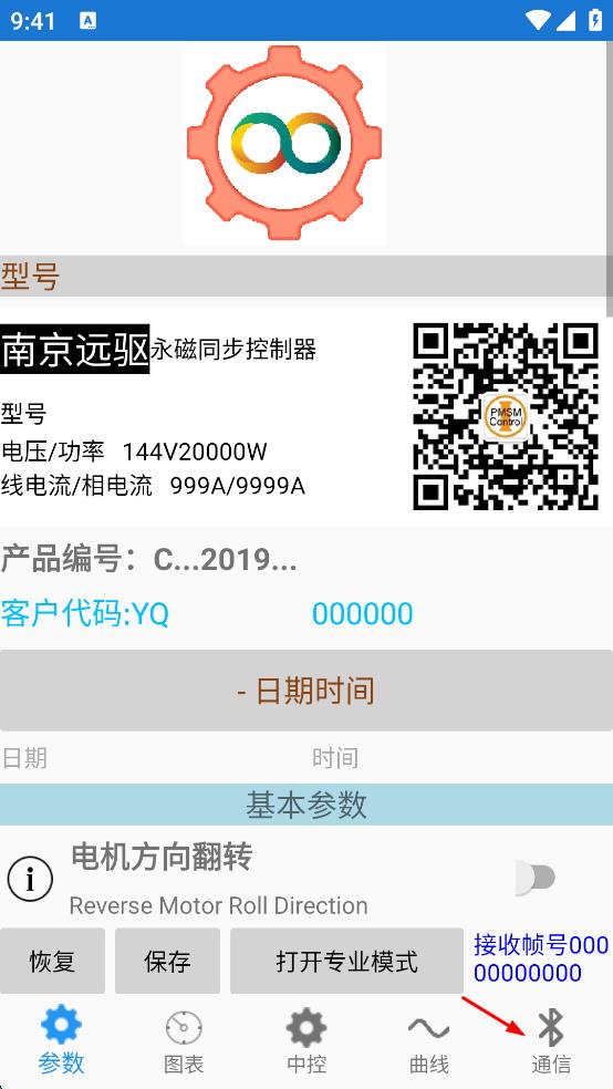 1、打開(kāi)電機(jī)控制軟件,進(jìn)入后點(diǎn)擊頁(yè)面右下角“通信”選項(xiàng)。