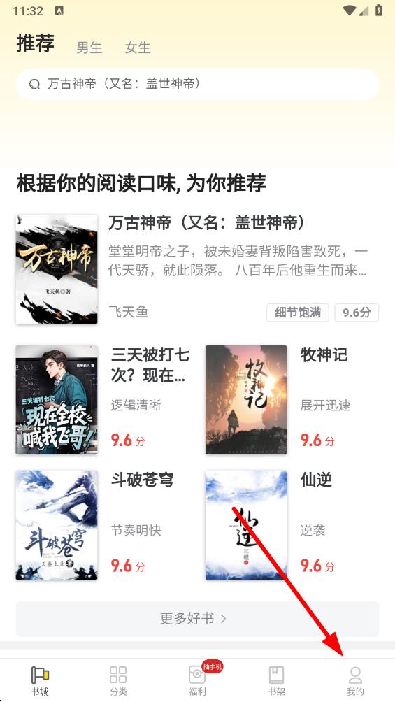 1、打開飯團(tuán)追書APP,點(diǎn)擊底部導(dǎo)航欄中我的圖標(biāo),進(jìn)入個(gè)人頁(yè)面。