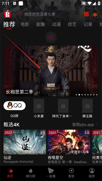 1、首先進(jìn)入軟件的首頁(yè),在這里找到你想要觀看的影片,這里小編以畫面中的長(zhǎng)相思這款軟件為例子點(diǎn)擊進(jìn)入;