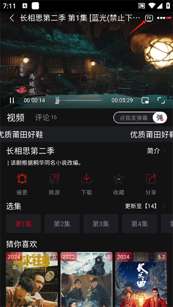 2、然后在這里找到并且點(diǎn)擊上方的【TV】這個(gè)投屏按鍵,即可進(jìn)行這款軟件中自己想要觀看影片的投屏操作了;