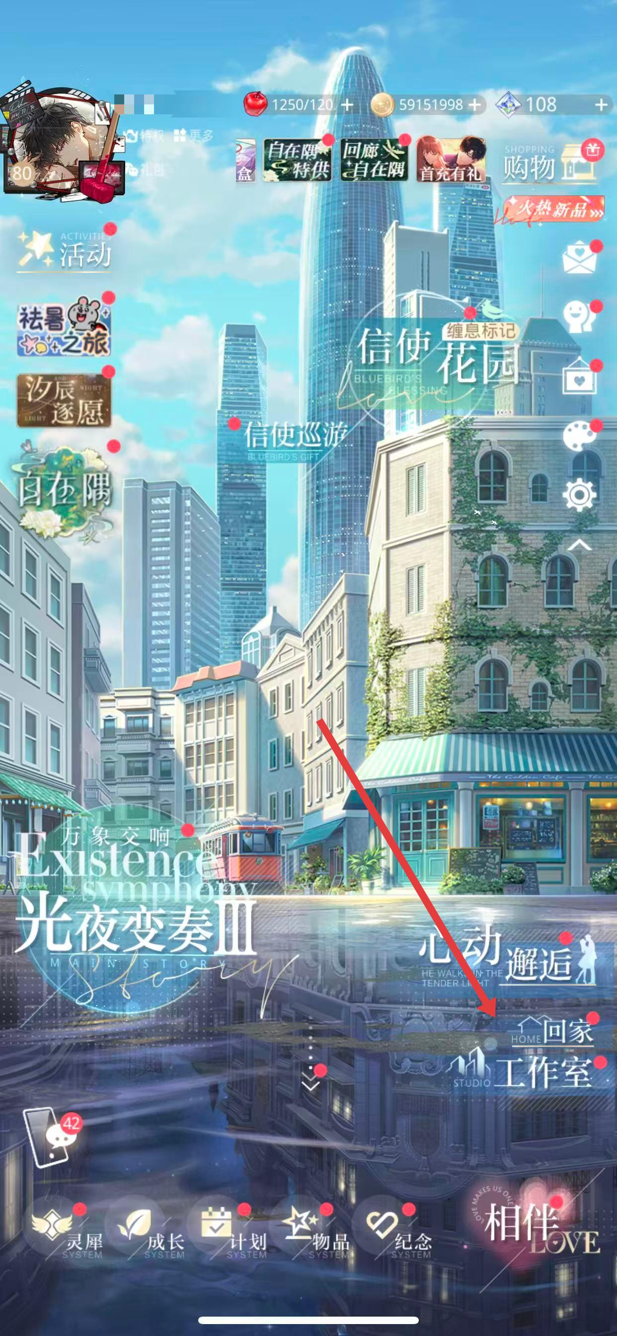 1、進(jìn)入游戲主界面,點擊右下方的回家選項。