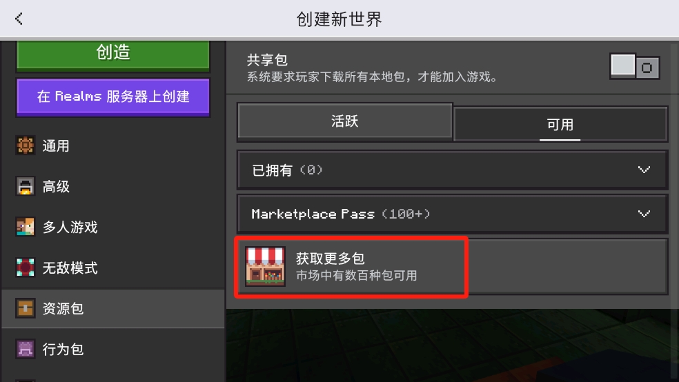 4、接著我們可以在這里獲取更多包中進行找尋,內(nèi)置超多的資源包可以選擇;