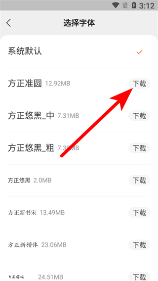 4、點擊想要的字體右側(cè)的下載按鈕,下載完成后即可使用該字體閱讀小說。