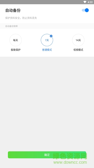 點擊主界面右上角“盾牌標識”按鈕,進入“自動備份”,根據(jù)個人需求設置并開啟相關權(quán)限后,即可開啟自動備份。建議設置每天或7天自動備份,及時備份到云端可避免數(shù)據(jù)丟失。