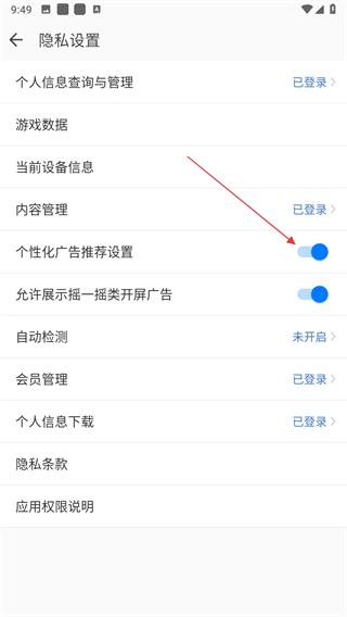 4、找到個性化廣告推薦設置選項,將其關閉。