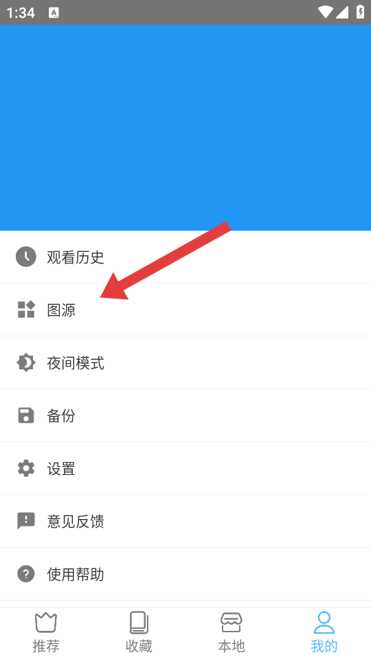 1、在芝士漫畫我的頁(yè)面,點(diǎn)擊圖源的選項(xiàng),進(jìn)入圖源管理的界面。