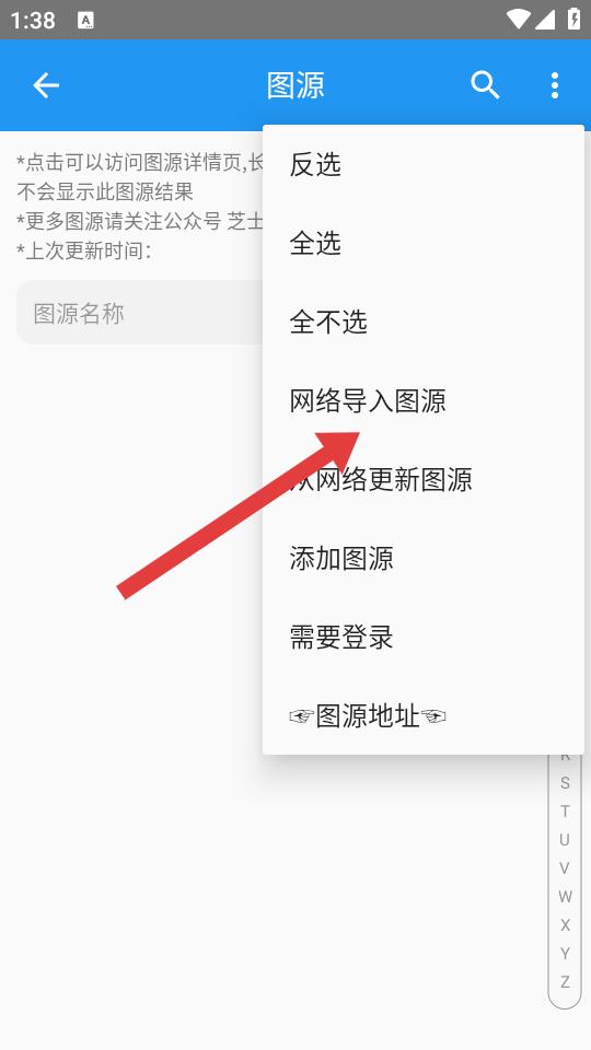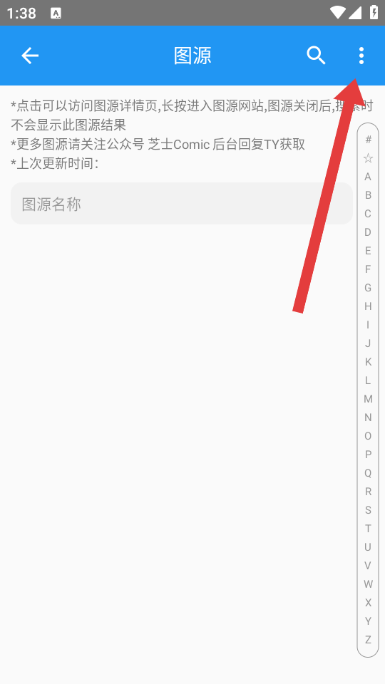 2、在圖源管理界面,點(diǎn)擊右上角的三點(diǎn)菜單按鈕,展開(kāi)功能選項(xiàng)。