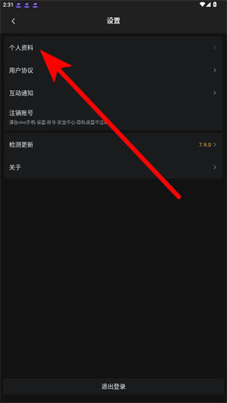 3.進(jìn)入設(shè)置界面后,點(diǎn)擊個人資料選項(xiàng)。