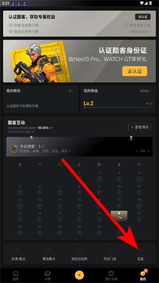 2.在個人中心界面,點(diǎn)擊設(shè)置選項(xiàng)。