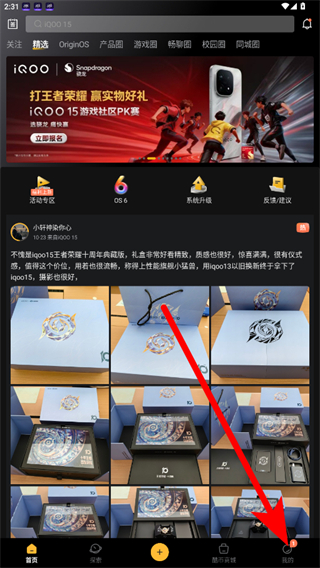 1.打開iQOO社區(qū)APP,點(diǎn)擊右下角我的進(jìn)入個人中心。