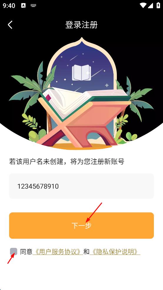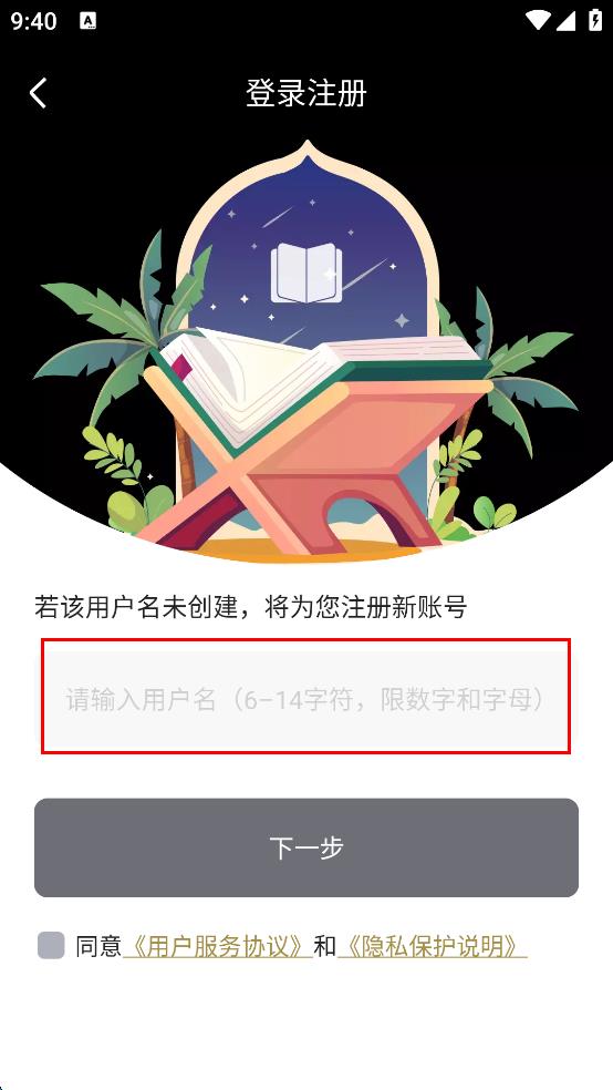 4、完成用戶名輸入和協(xié)議勾選后,點(diǎn)擊“下一步”按鈕,繼續(xù)后續(xù)的登錄注冊流程,逐步完成賬號的登錄或注冊操作。