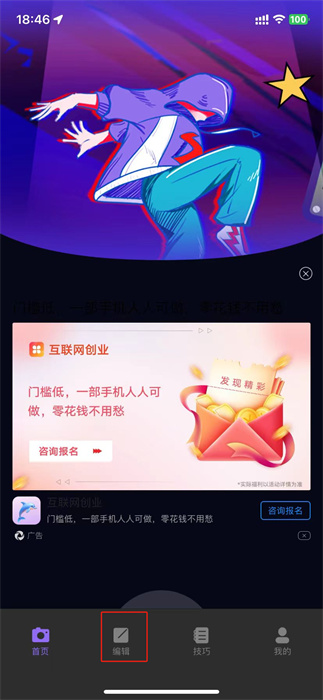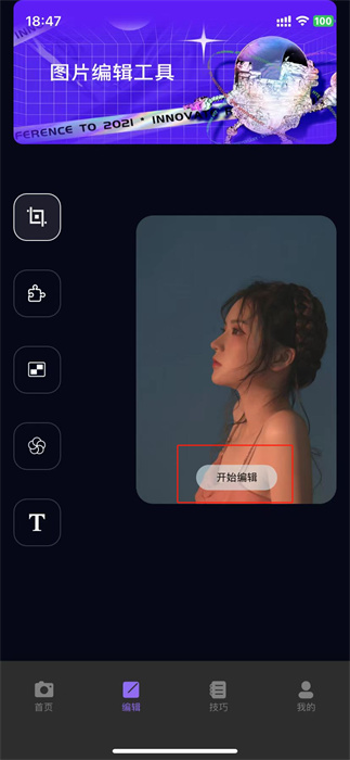 2、此時(shí)將需要點(diǎn)擊屏幕中央的【開(kāi)始編輯】按鈕,以快速的進(jìn)行圖片的選擇與編輯;