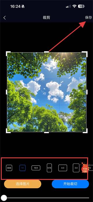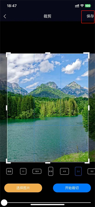 4、裁切完畢之后,只需要點(diǎn)擊屏幕右上角的【保存】按鈕,即可進(jìn)行圖片的保存。