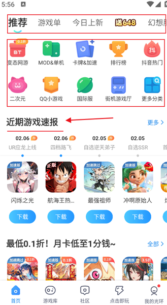 1、首先通過本站下載安裝好光環(huán)助手APP,在首頁清晰的界面提供豐富的游戲資源,上方有各種平臺推薦內(nèi)容以及今日上新的游戲都在這里查看,還有各種游戲分類以及近期的游戲資訊速報,都能第一時間了解;