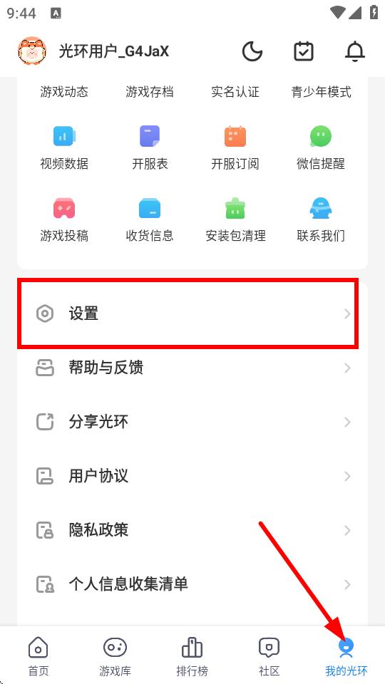 1、進入到我的光環(huán)頁面,在個人界面中找到并點擊設置選項。