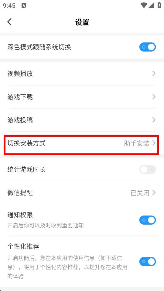 2、在設置界面里,找到切換安裝方式并點擊進入。