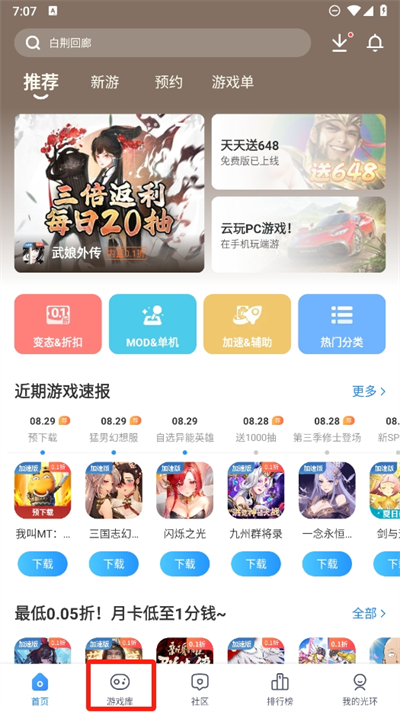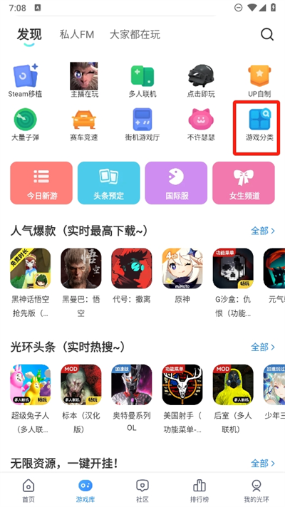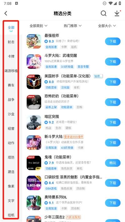 3、進(jìn)入游戲分類(lèi)出可以看到有各種精選的游戲分類(lèi),根據(jù)個(gè)人的需求選擇不同的游戲類(lèi)型吧;