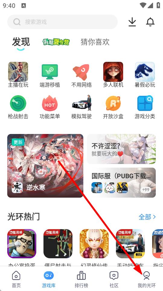1、打開(kāi)光環(huán)助手應(yīng)用程序,點(diǎn)擊底部導(dǎo)航欄中我的光環(huán)選項(xiàng)進(jìn)入個(gè)人頁(yè)面。