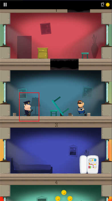 5、不同的層數(shù)將會(huì)遇到不同的危險(xiǎn),如有些樓層之中有警察,需要快速的進(jìn)行躲避。