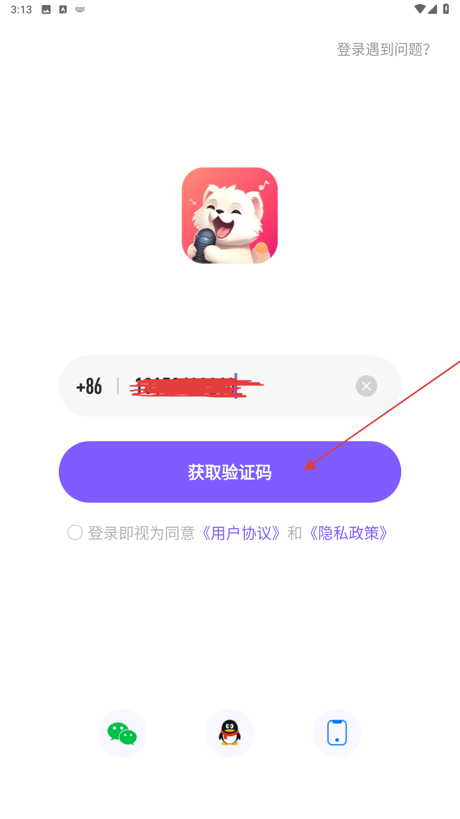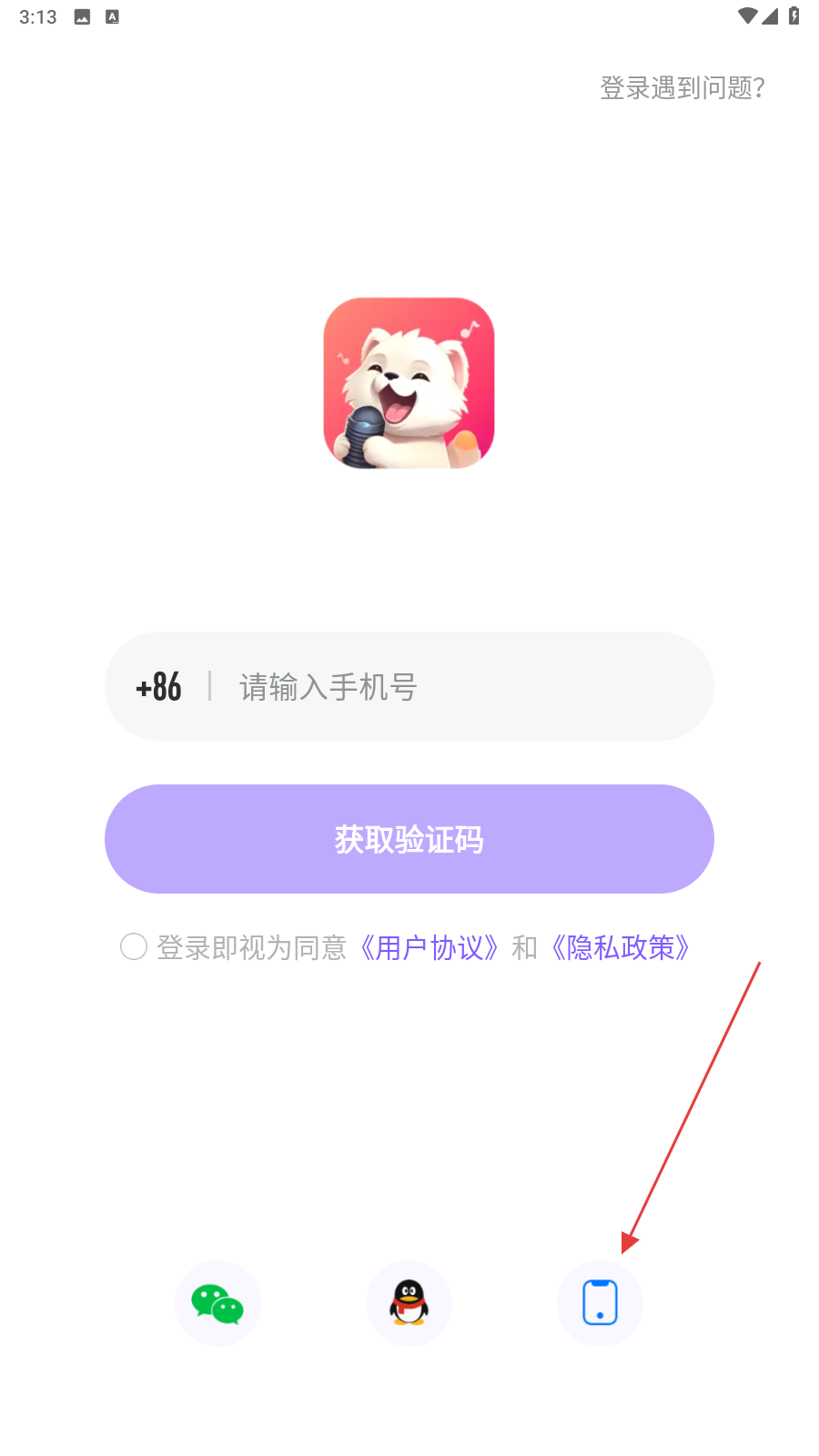 2、在登錄的頁面內(nèi),點擊下方手機號登錄。